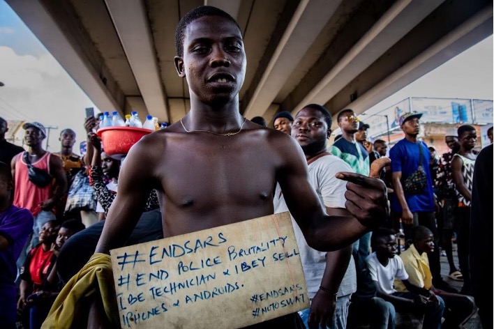 #EndSars #EndPoliceBrutality #NoToSwat. Photographer: Omorogie Osakpolor. Twitter and IG: @1884photo