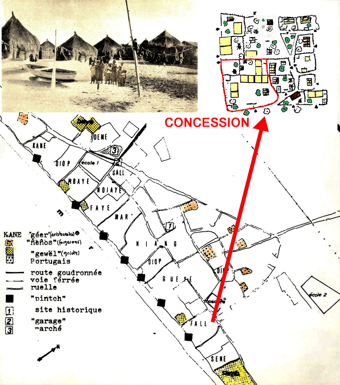 This is a concept […] that the West has imposed on Africans, I mean their way of life, but the realities and the concept of the family are different in Africa, especially in Senegal, in Thiaroye. They [the French] say the „concessions“, they really don’t consider our households as households […]. The „concessions“ are concepts imported from the West.  […] [They are] boundaries of households, spatial delimitations on certain plots of land, these are „concessions,“ but they do not correspond to our concept of „ndieul“ (Pape Medoune Ndyiaye, philosopher in the community of Thiaroye sur Mer).
