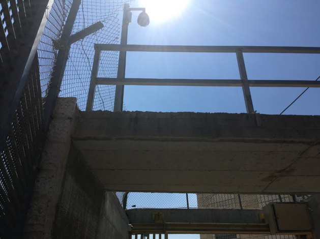 In Jerusalem selbst dann begegnet mir die Anordnung von Oben und Unten auf kleinerer Skala: Wir laufen durch die Gassen der Altstadt, vorbei an vielen Geschäften, der Via Dolorosa, dem Geburtsort der Jungfrau Maria, zahllosen Touristen. In einer Straße hängen im zweiten Stock israelische Flaggen an den Balkonen, an den unteren Balkonen hängt nichts, nur Wäsche zum Trocknen. Wer wohnt hier? Gibt es Konflikte im Treppenhaus? Später ist ein Abschnitt einer Straße in drei Meter Höhe komplett mit einem Metallgitter bedeckt. Ich frage nach: Oben wohnen israelische Familien, unten sind arabische Geschäfte. Das Gitter dient als vertikale Abgrenzung, von oben wird Abfall runtergeworfen: leere Flaschen, Zigarettenschachteln, benutzte Windeln. Lässt sich das einordnen im Sinne einer vertikalen (Mikro)Politik, in der die Oberen ihren Müll auf die weiter unten werfen, oder ist es einfach Nachlässigkeit? Soll das Gitter schützen – wenn ja, wen? – oder die Abgrenzung markieren? Ich frage mich, ob auch dieses Gitter der (Über)Ordnung, Dominanz und Überwachung dient.