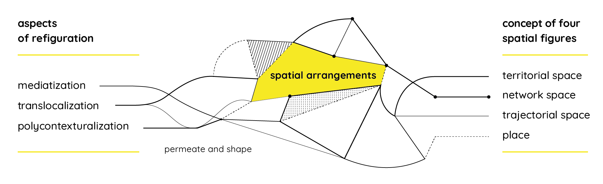 The basic thesis of the CRC 1265 is that processes of social change, hitherto summarized under the label of globalization, have led to renegotiations, rearrangements and transformations in how people relate to their spaces. A programmatic starting point is the idea that, complementary to temporal acceleration, spatial action is undergoing a significant increase in complexity in the form of polycontexturalization, translocalization and mediatization.